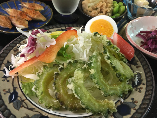 Fried bitter gourd, fresh vegetables