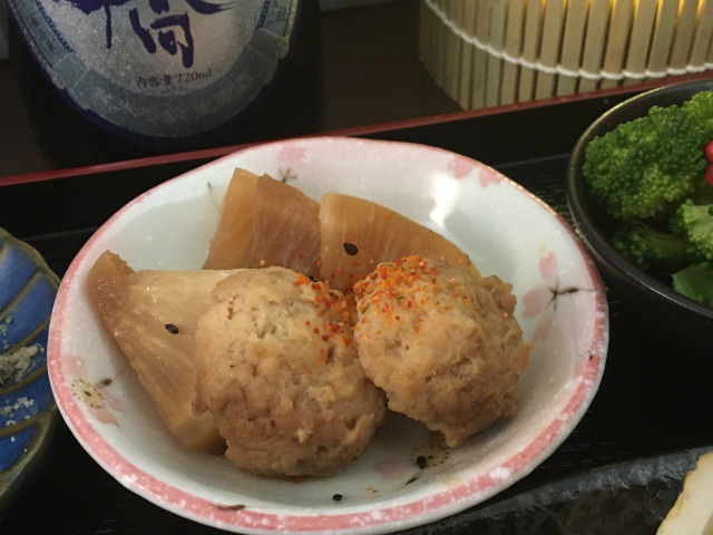 Simmered DAIKON radish and chicken meatballs