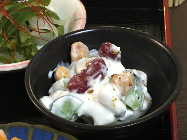 Mixed beans and cucumber cottage cheese salad