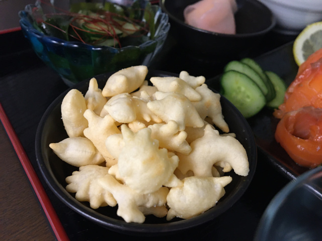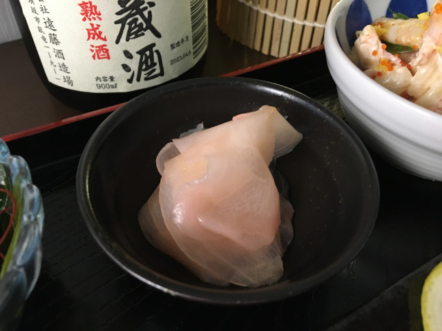 I chose mountain-born sake for the Marine day, because on a hot summer day, sake on the rock that can be goes well with Sushi.