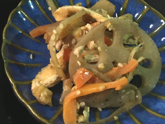 Stir-Fried vegetable in soy sauce and sesame oil, rich dietary fiber.