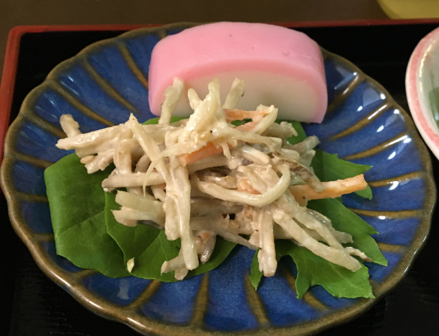 Burdock mayonnaise salad and kamaboco