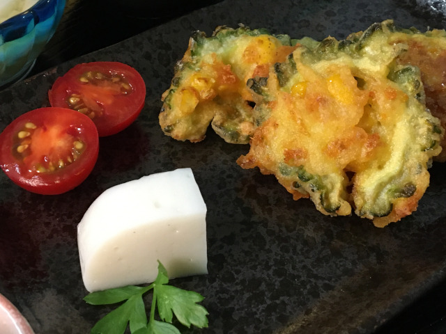 Deep fry bitter melon crispy, kamaboko, tomato