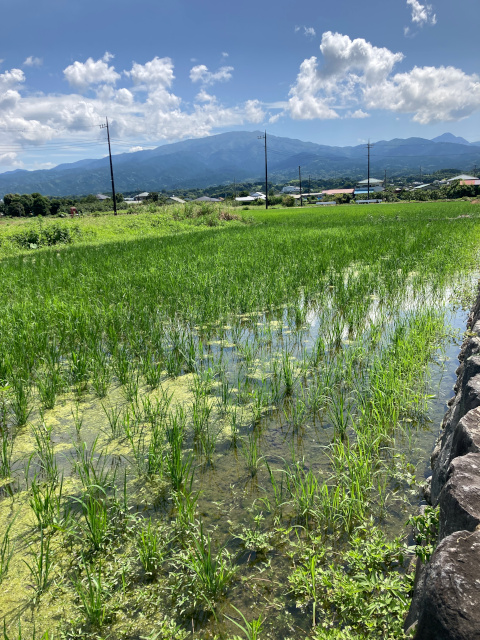 売店前の田んぼは酒米だそうです!初めて見ました、酒米は背が高いと聞きましたが、まだ小さかったです。