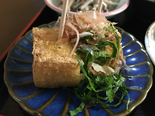 Fried tofu with bonito flakes and SHISO Japanese basil