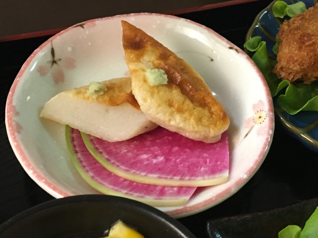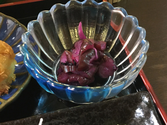SHIBA-ZUKE garnish, pickled cucumber and red SHISO leaves